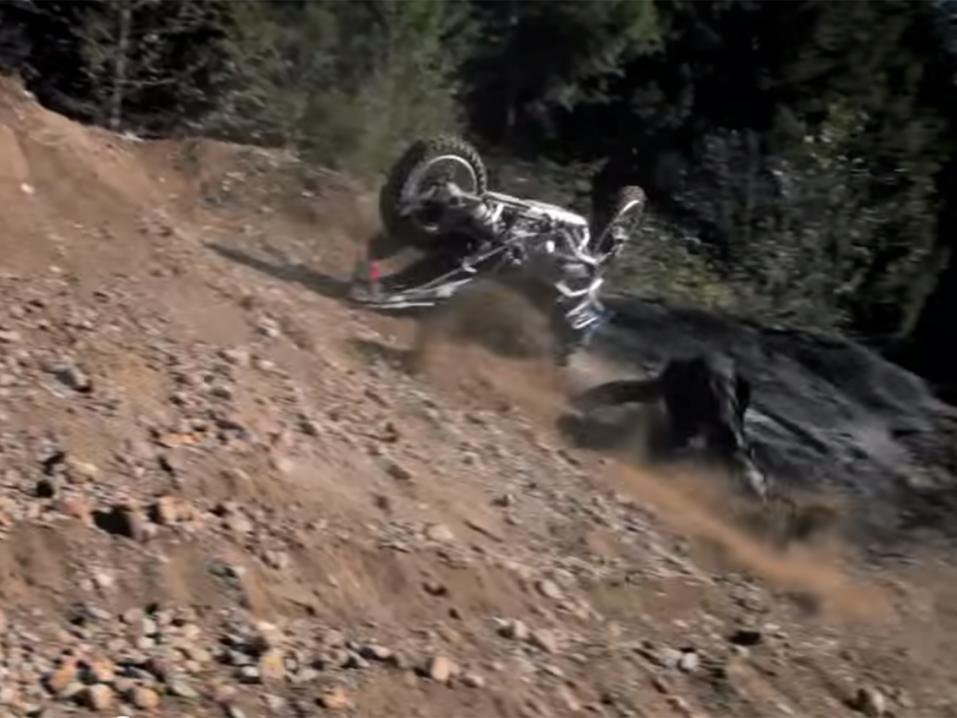Pyörän kuljettajana videolla "törmäystestissä" kaatumarautojen toimivuutta koettelemassa on AltRiderin hallituksen puheenjohtaja Jeremy LeBreton. Kieltämättä hän tekee komean pyörähdyksen rinteessä, ja raudat toimivat kuten pitivät. Vai toimivatko?