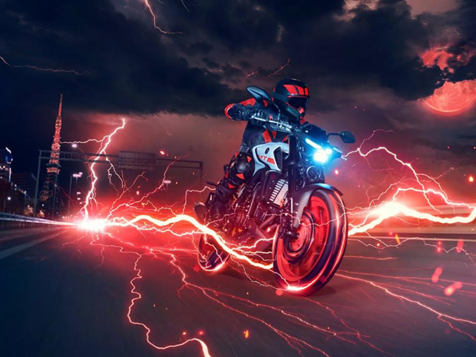 Pyörässä on myös Led-ajovaloa kehystävät parkkivalot. Samalla pyörän piirteet myötäävät isompien MT-mallien olemusta. Myös vilkut on toteutettu Ledein.