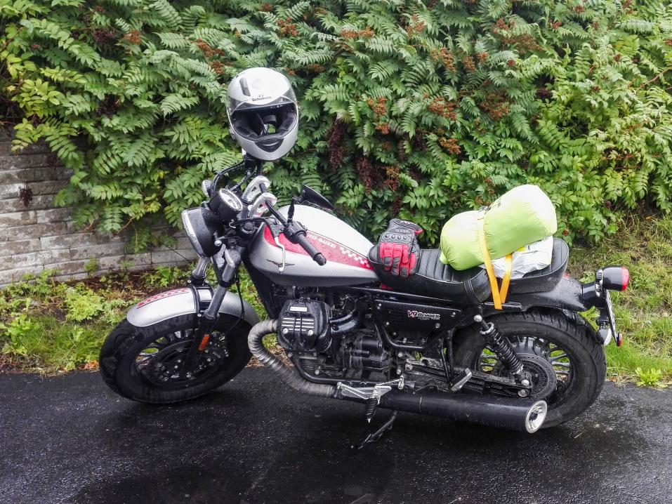 Sain siis alleni 850-kuutioisella V2-moottorilla varustetun Moto Guzzi V9 Bobberin, joka ajoasennoltaan ja muodoiltaan oli kaikkea, mitä en ollut koskaan kokeillut. Kuten viime kesänä niin usein, koko viikonlopun satoi vettä, joten ajaminen jäi vain noin 500 kilometriin. Joka tapauksessa ehdin ajaa pyörällä sekä motarilla, pikku- ja sorateillä että kaupungissa, joten ainakin ehdin saada monipuolisen kuvan pyörän ominaisuuksista erilaisilla ajoalustoilla.