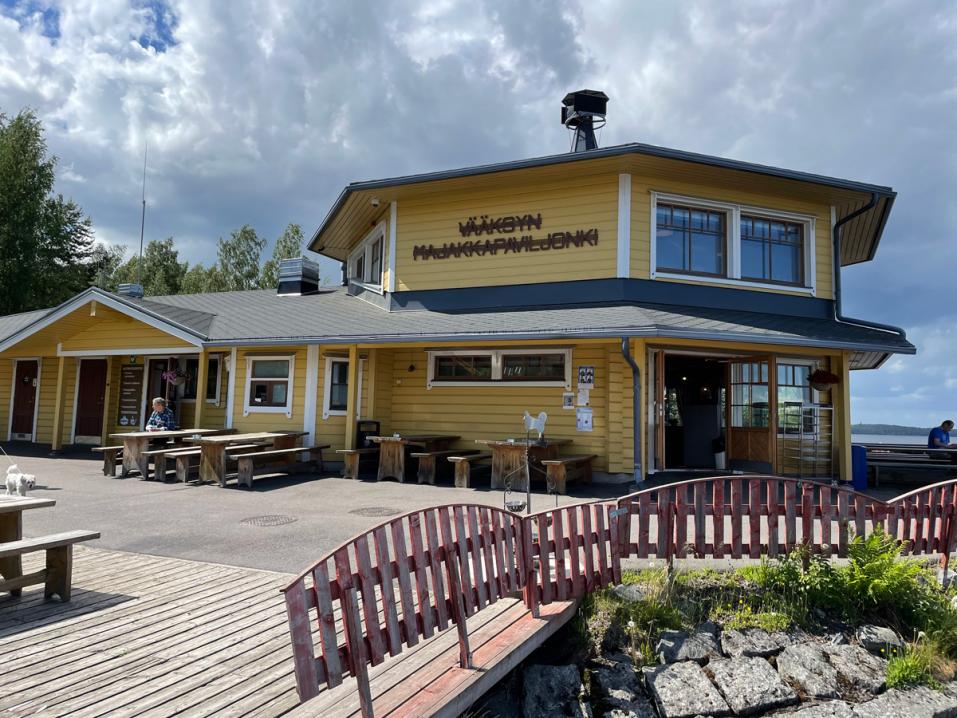 Jos emme olisi juuri syöneet, niin varmasti olisimme testanneet paikan ruokatarjoilua. Sitä on kommentoitu jopa Vääksyn parhaimmaksi ruokapaikaksi. Tällä kertaa pehmis toimi hyvänä jälkiruokana. Sitä nautiskellessa jaloittelimme kaunista kanavan rantareittiä Vääksyn kanavan sululle. Majakkapaviljongin sijainti on hieno Päijänteen rannalla. Ihan sattumalta paikalle ei äkkiseltään eksy, mutta opasteita seuraamalla löytää perille.
