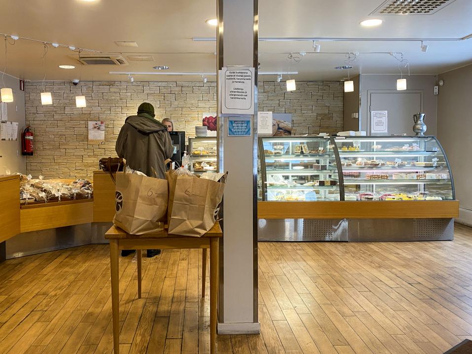 Koska olin juuri syönyt tukevan aamupalan, ei hinkua tuotteiden maistamiseen ollut. Mutta työskenneltyäni aamupäivän hotellihuoneessa ja kun tuli aika poistua huoneesta, ajattelin, että miksei! Sitten selvittämään Huovisen Leipomon liikkeiden sijaintia ja menin oman kulkureittini kannalta sopivimpaan myymälään Maikkulaan.