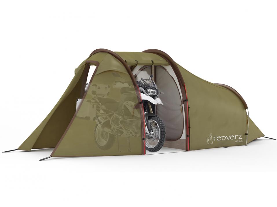 Teltta pystytetään kolmen alumiinikaaren varaan, ja pyörän säilytystilaan pitäisi mahtua isonkin moottoripyörän suoraan sivu- ja takalaukkuineen. Talliosaan pitäisi normikuskin mahtua operoimaan seisaallaan, mikä on tietysti helpotus täysissä ajovarusteissa olevalle kuljettajalle.