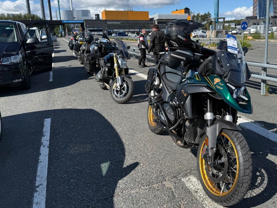 Onneksemme sää oli hieman parantunut edellisestä päivästä. Pilvipoutaisessa säässä tarkeni hyvin odotella. Laivaan pääsyä odottamassa oli lisäksemme muitakin motoristeja, viisi paluumatkalla ollutta saksalaista, yksi britti ja sivuvaunumoottoripyörällä Eurooppaan suunnannut suomalainen pariskunta.