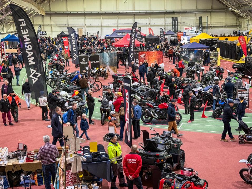 – Ja kannattaa muistaa meidän puoliksi huumorijuttuna järjestetyt muotinäytöksemme, niitä on pari päivässä. Niihin on kerätty kerhon edustavia henkilöitä. Ajovarusteita on nähtävillä ainakin kolmen näytteilleasettajan tarjonnasta, joten jos kaipaat osviittaa ajoasujen valinnasta, kannattaa tulla katsomaan.
