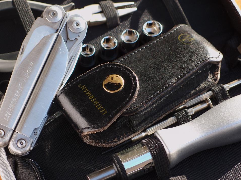 Oman kokemukseni mukaan motoristi tarvitsee mukaansa ainakin kaksi asiaa, nimittäin ilmastointi- eli roudarin- eli jeesusteippiä sekä tietysti monitoimilinkkuveitsen. Ei väliä onko se sveitsiläinen vai Leatherman, kunhan on laadukas ja siinä on riittävästi erilaisia työkaluja.