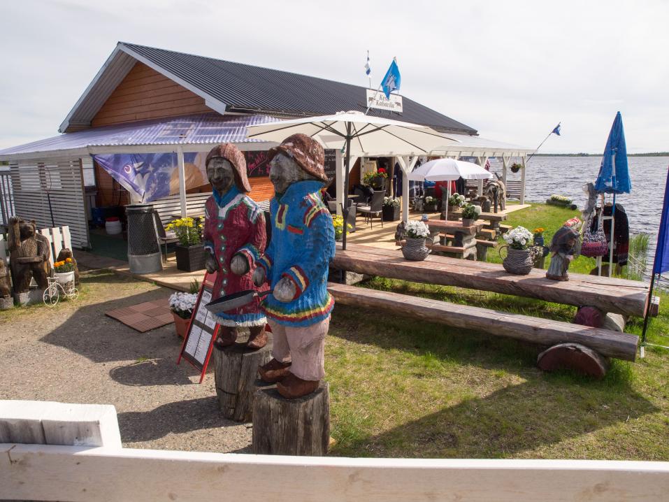 – Aloitimme tämän kahvilan pidon mieheni kanssa 12 vuotta sitten. Olen alusta alkaen tehnyt kaiken tarjolla olevan mahdollisimman pitkälle itse leipomuksista lohen suolaamiseen asti. Myös sisällä myymälässä olevat hopeakorut ovat osittain minun tekemiäni. Puukot ja kuksat ovat puolestaan lappilaisten käsintaitajien pajoista peräisin ja aitoa käsityötä siis, Anna Kangas kertoo.