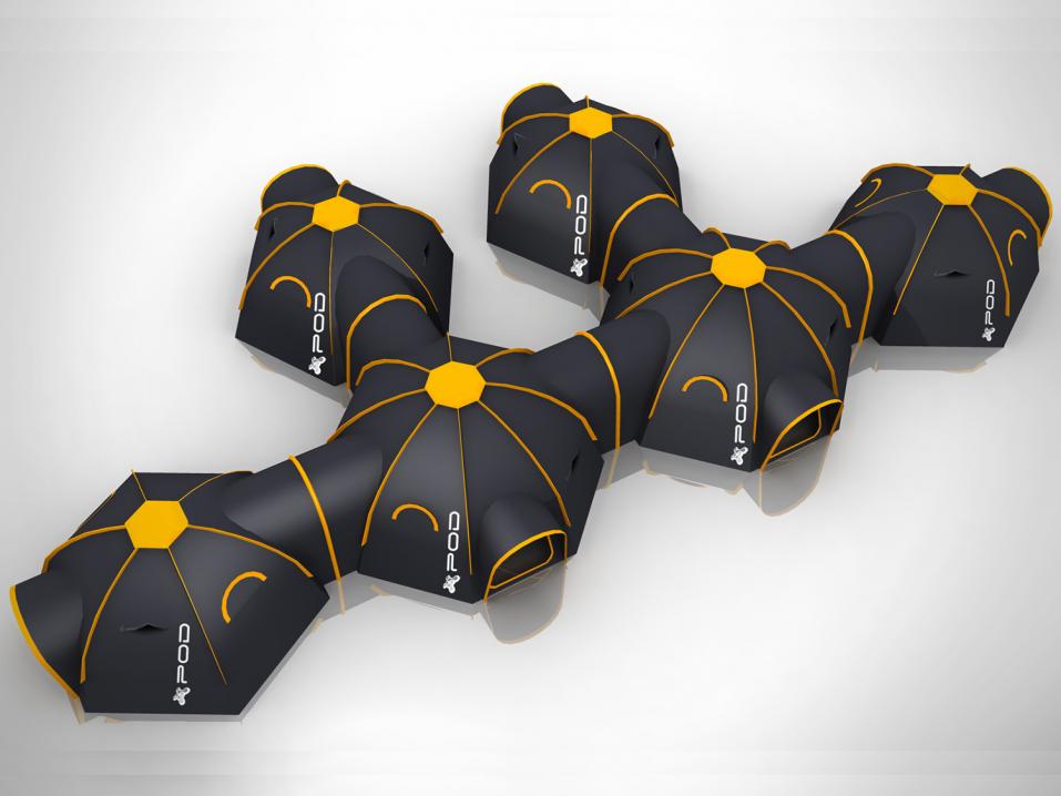 Pod-telttojen suunnittelija on brittiläinen M2C Innovation, ja se on ottanut suunnitteluunsa selvästi vaikutteita avaruusmatkailusta. Erityisesti siitä, miten esimerkiksi Marsiin on suunniteltu rakennettavan modulaarisia kahdeksankulmaisia majoitus- ja työskentelytiloja, jotka on sitten kiinnitetty käytävillä toisiinsa.