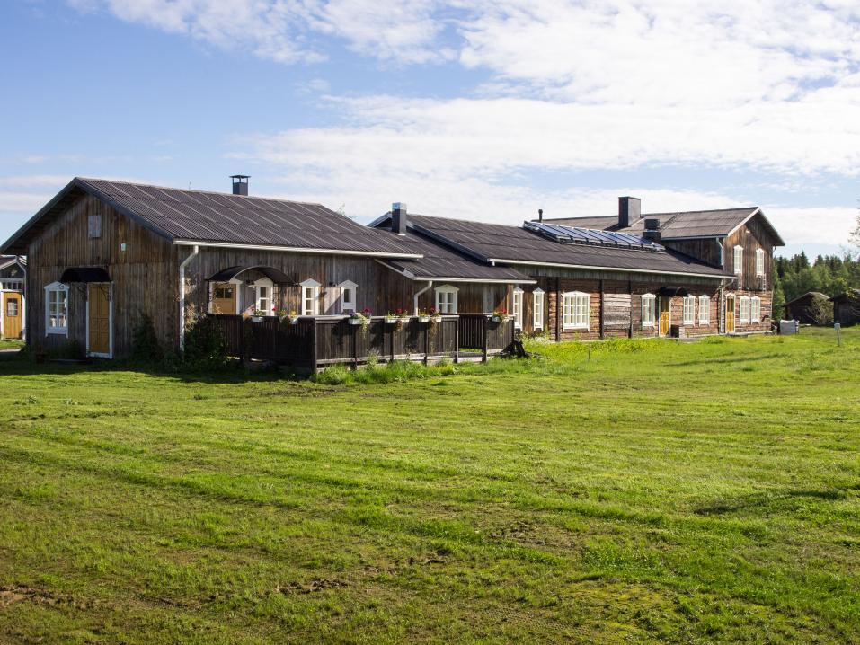 – Kaikki rakennukset on rakennettu paikalle siirretyistä vanhoista hirsirakennuksista. Toimme tänne esimerkiksi Pallasselästä läheltä Raattamaa Veitsiluodon (nykyinen Stora Enso) tukkikämppäkylän hirret ja samoin Avestapolariksen entisen Outokummun Pöyttään sahan henkilökunnan 12 hellahuoneen hirret ovat siirtyneet tänne ja saaneet uuden elämän, kertoo Päivikki Palosaari rakennusten historiasta.