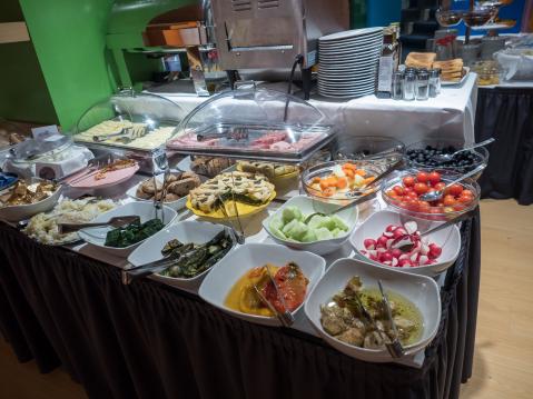 Aamiasvieraista ja aamiaishuoneen siisteydestä huolehti Domenico asiaankuuluvalla arvokkuudella. Valitsemasi kahvi tarjoiltiin pöytiin. Perinteisen munakkaan, pekonin, juuston ja kinkun lisäksi tarjolla oli runsas valikoima tuoreita, marinoituja, paistettuja ja höyrystettyjä hedelmiä ja vihanneksia, tuoreita kasvispiirakoita, sämpylöitä ja makean nälkään lukuisia vaihtoehtoja paikallisia tuoreita leivonnaisia, joita löytyi eri tarjoilupöydiltä. Takuuvarmasti jokaiselle jotakin.