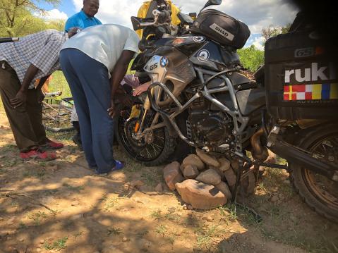 Toinen asia, minkä opimme, on se, että kannattaa ottaa - riippumatta siitä, mitä pyörät toimittava firma sanoo - omat korjauskitit mukaan. Zimbawen pohjoisosassa pyörät alkoivat prakaamaan. Tuli rengasvikaa ja sähkövikaa. Sovelsimme tietysti parhaamme mukaan, mutta ekan haaverin jälkeen ostimme heti lisää työkaluja ja tarvikkeita.