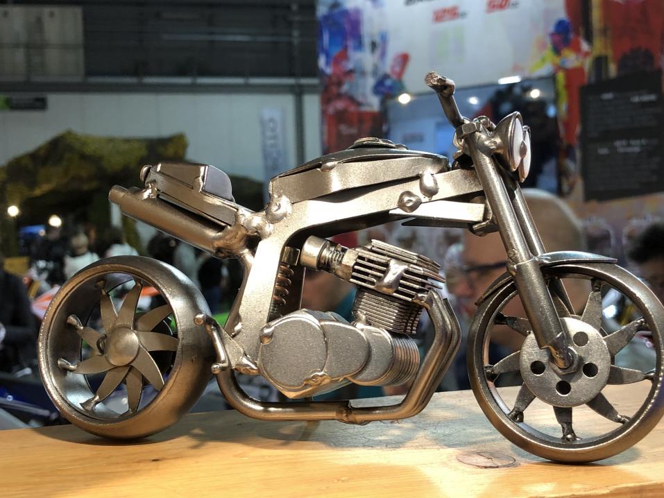Suurin osa näistä Gunter Scholtzin metallisista taideteoksista on koriste-esineitä, mutta repertuaarista löytyy ihan käyttöesineitäkin, viinitelineistä aina vessapaperirullatelineisiin asti. Osin hyvinkin humoristiset hahmot saavat hyvälle mielelle ja kaikessa näkyy vankka ammattilaisen kädenjälki. Tässä muutama näyte Gunter Scholtzin EICMA 2018 olleesta näyttelystä. Koko malliston pääsee katsomaan hänen kotisivuiltaan: www.hinz-kunst.de