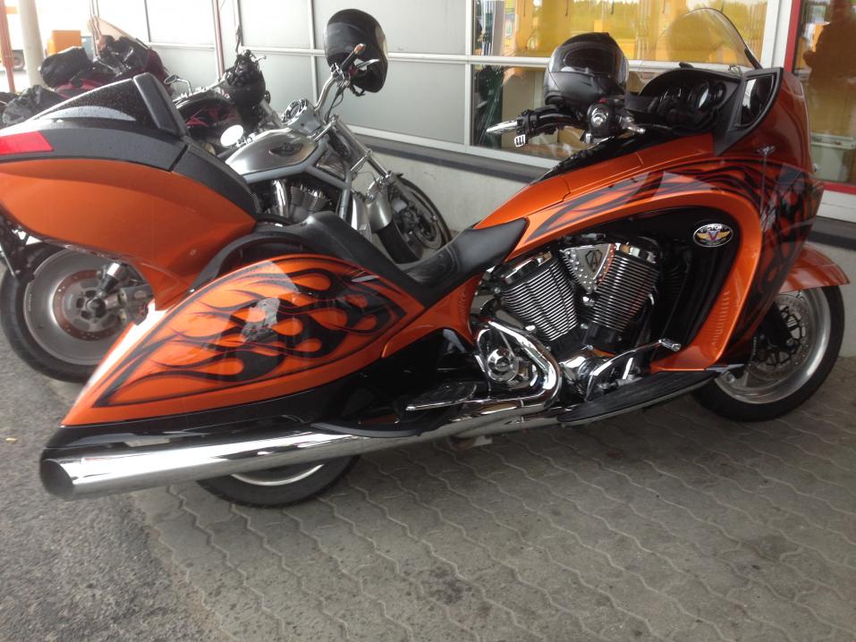 Kyseessä oli Victory Vision Tour joka on jo itsessään huomiota herättävä matkapyörä. Tämä kyseinen yksilö on vielä lisäksi Arlen Nessin customoima mm. liekkimaalauksin, hotrod-aluvantein ja sylinterinkansien timanttileikkauksin varustettu yksilö, joita on tehty rajallinen numeroitu sarja, niin voidaan Suomen olosuhteissa puhua uniikkiyksilöstä.