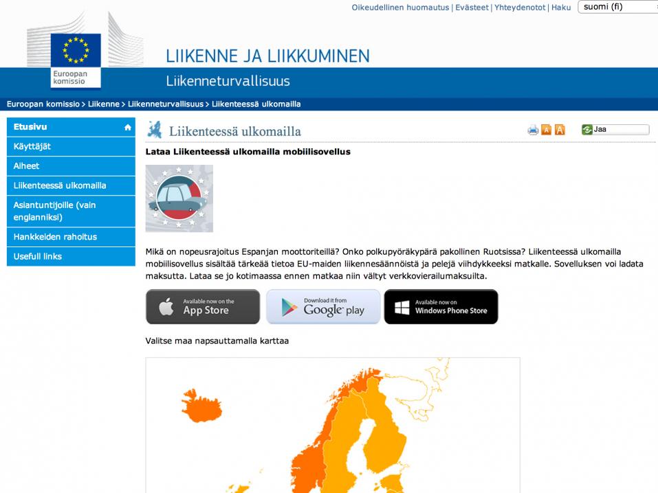 Sovellus on saatavilla myös normaalina liikennetietoussivustona EU:n komission sivuilta täältä.