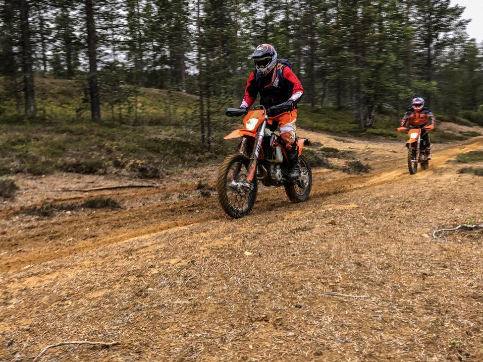Pyöränäni oli perjantain ajon aikana vuosimallin 2020 tuliterä KTM 350 EXC F, jolla oli ajettu vasta puolitoista tuntia, joten jarrut reagoivat herkästi ja olivat todella tehokkaat.