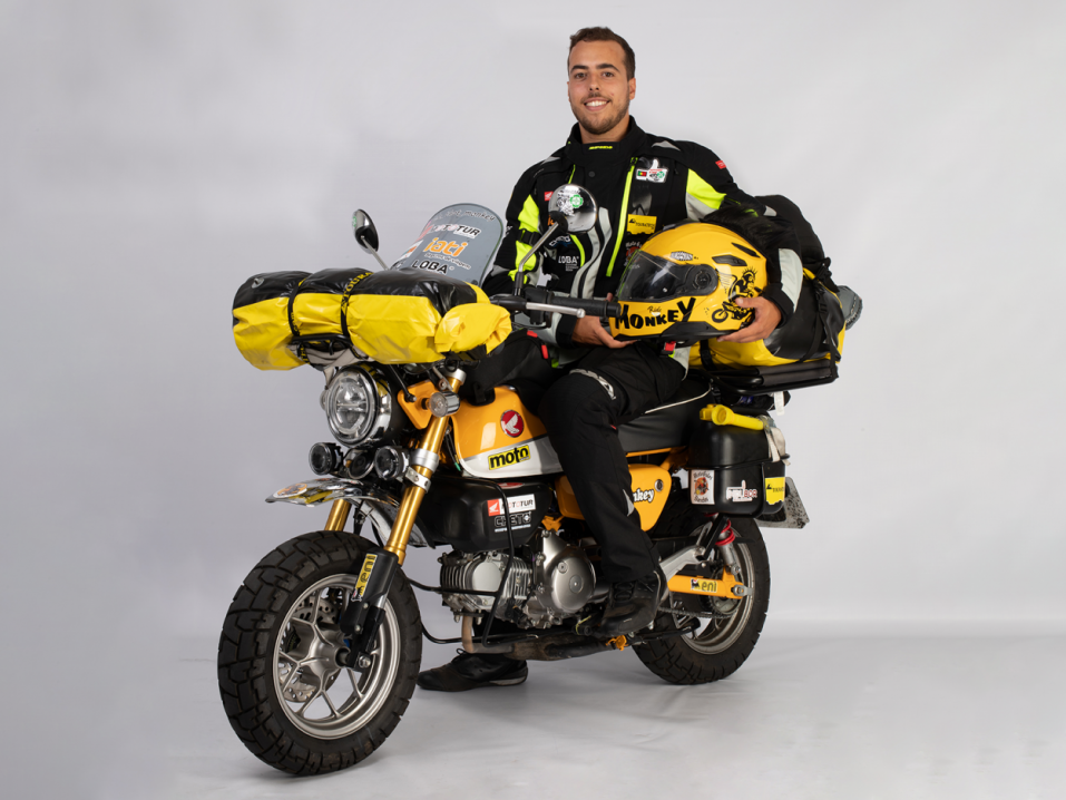 Entä sitten ennätysyrityksessä käytettävä moottoripyörä? Se on hänen mukaansa yksi pienimmistä, luotettavimmista ja vahvatekoisimmista moottoripyörämalleista, mitä markkinoilla on, eli Honda Monkey -kevari.