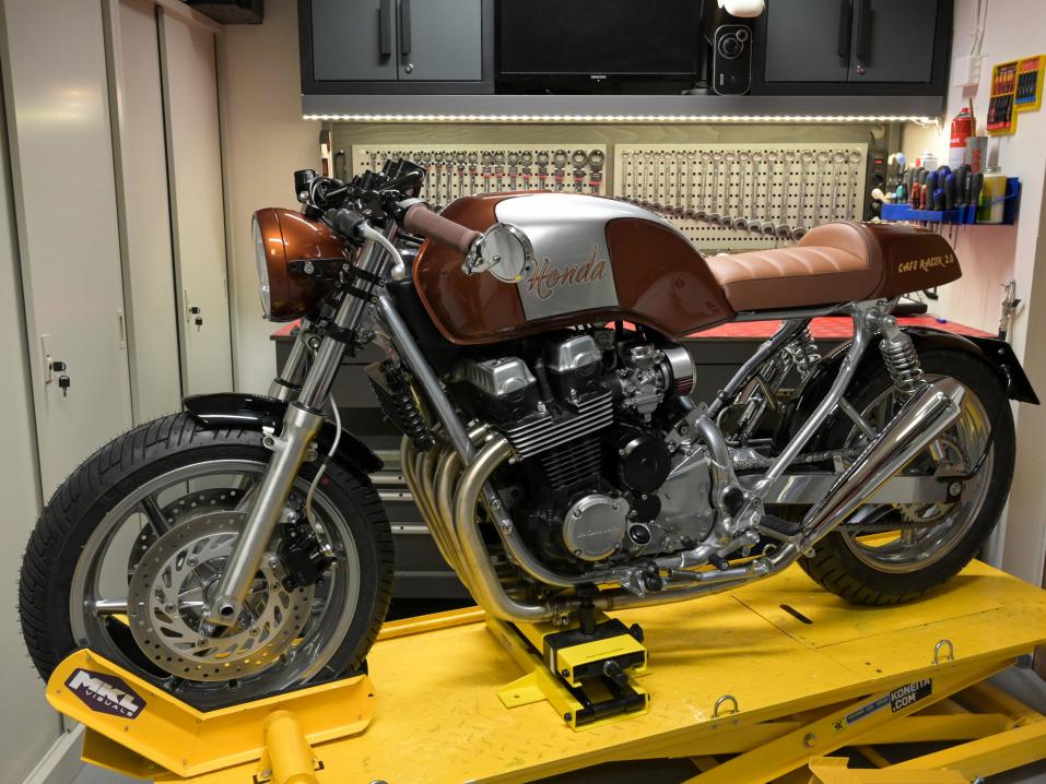 – Ensimmäinen isompi projekti oli Honda 600 Shadow, josta tein bobberin pari vuotta sitten. Se oli runkoa myöten purettuna palasiin. Viime talvena sain valmiiksi Yamaha XJR1300:n ja nyt työn alla on tämä Café Racer 2.0. Tämä on suuritöisin näistä kaikista, mutta nyt se alkaa vähitellen olla valmis.