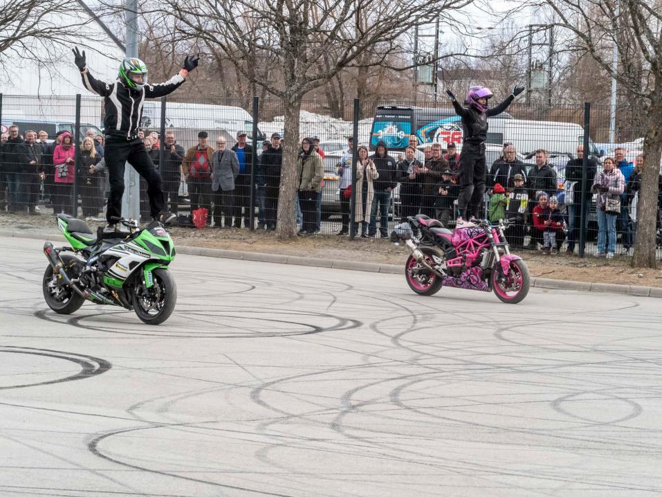 Tähän asti Kuopion MP-näyttelyn stunt show:n esiintyjät ovat olleet suomalaisia, mutta tänä vuonna Kuopiohallin kentällä oli kansainvälistä tunnelmaa, kun paikalle oli saatu loistavan Niko Säkkisen pariksi esiintymään myös Dasha Kharcenko. Stunt-piirit ovat perinteisesti miesvaltaisia. Naisstuntkuskeja toki löytyy, mutta verrattain vähän. Se, että Dasha saatiin Suomeen, on KMC ry:n puheenjohtajan Pentti Koistisen ansiota.