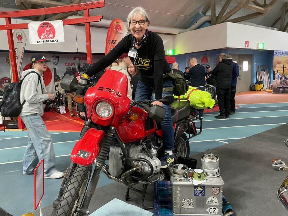 Pitkän linjan naismotoristi, Anja Kauppinen Kuopion mp-näyttelyssä.