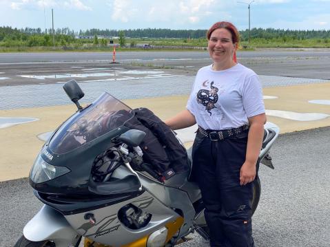 – Olen katsellut pienestä pitäen auton ikkunasta ihaillen, kun moottoripyörä on mennyt ohi. Nyt lopulta sain puolentoista vuoden tuskien taipaleen jälkeen itse suoritettua A-kortin, Sanna kertoo.