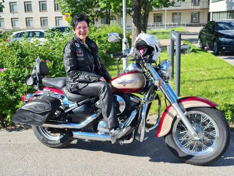 "Heipparallaa! Olen Tuula Toikka, 61v, ja asun 1,5 vuotiaan amstaffitytön kanssa Hollolassa. Työskentelen perusterveydenhuollossa psykiatrisena sairaanhoitajana. Olen suorittanut kognitiivisen lyhytterapia -koulutuksen ja käynyt myös kriisityön koulutuksia. Motoristien Kriisipalvelun kriisityöntekijänä aloitin 2022 alussa ja koen ”leipätyöni” ohella tämän luontevaksi jatkumoksi auttaa ja tukea kriisitilanteissa, pohjautuen myös omiin kokemuksiini.