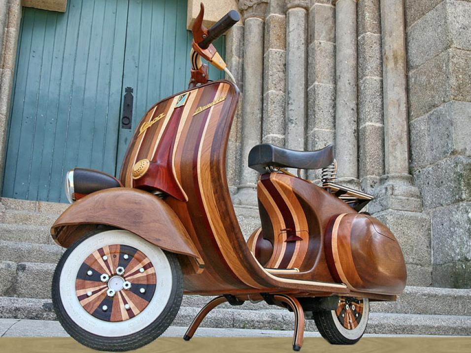 Puinen Vespa on rakennettu monista eri puulaaduista kuten ruusupuusta, osin ulkonäön osin kestävyden vuoksi. Sen moottori on yksisylinterinen kaksitahtinen, kuutiotilavuus 123,67 cm3. Siinä on ilmajäähdytys ja viiden hevosvoiman huipputeho 4850 rpm. Käynnistys polkimella, kolme vaihdetta eteen. Painoa laitteelle on kertynyt 107 kg, mihin puun käyttö on tuonut 20 kilon lisäyksen. Huippunopeus on 125 kmh.