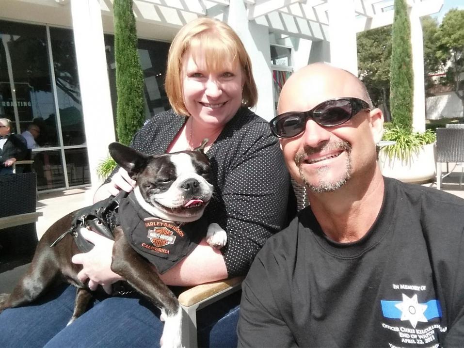 Mark Shaffer on Chopper the Biker Dogin isäntä ja hän on ihmeissään siitä, että Pet Partners -niminen (lemmikkieläinkumppanit) organisaatio on perunut työkseen terapiakoirana toimivan Chopperin lisenssin, koska tämä on pitänyt yllään H-D-nahkaliiviä. Shaffer kertoo, että Chopper pukeutuu usein erilaisiin moottoripyöräilyyn liittyviin asuihin kuten kypärään, bandanaan tai nahkaliiviin.