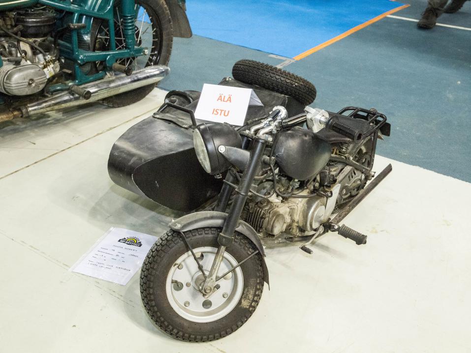 – Kai se siitä lähti, kun itsellä on tuo sivuvaunu-Ural ja sen näköä tähän Monkeyn sivuvaunuunkin tavoittelin. Tein samalla pyörästä jäykkäperäisen, ja taisi siinä vähän akselivälikin kasvaa samalla, Veikko Miettinen kertoo. – Vaunun runko ja kiinnikkeet on tehty vesijohtoputkesta.