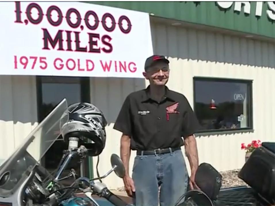 Vuosimallin 1975 Honda Gold Wingin matkamittari ja tasainen lukema: miljoona mailia!