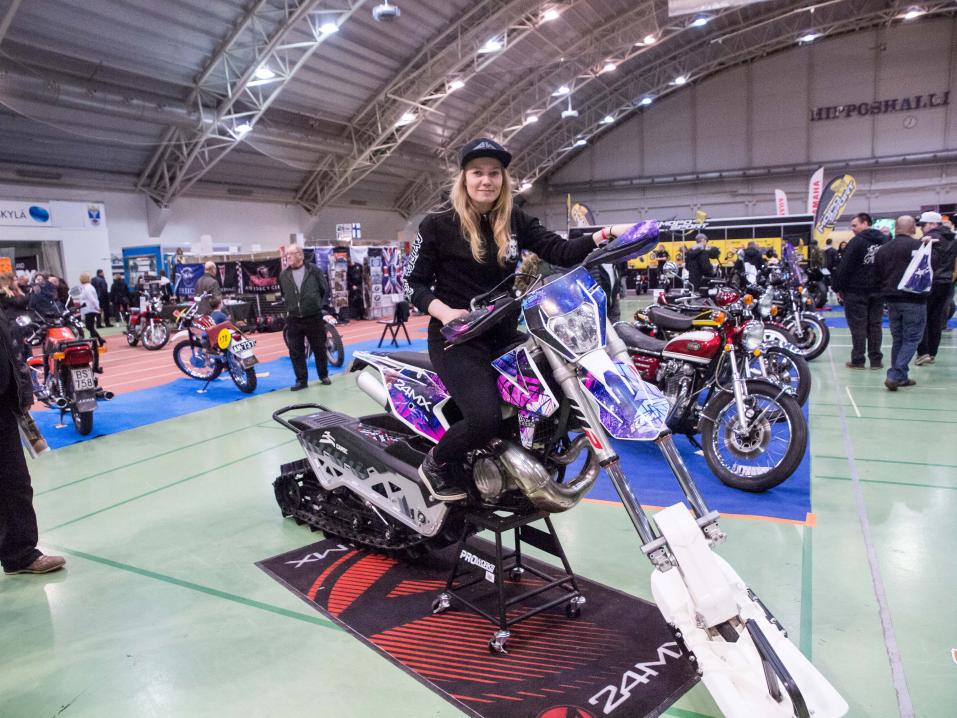– Olen aina tykännyt talvesta ja metsässä ajamisesta. Kun näin tämän, niin halusin heti itselleni tällaisen. Tästä tuli vähän niinkuin talviharrastukseni. Tällä on ollut ihan mahtava ajaa. Tämä on vähän jäykempi kääntää, mutta muuten ajettavuus on yhtä helppoa kuin normaalilla moottoripyörällä. Tällä pääsee syvässäkin lumessa tuntureihin. Tänä talvena ehdin olla pari kuukautta Muoniossa ajamassa tällä, selitti selitti kesät Jyväskylässä ja talvet Lapissa viettävä Regina Lanko.