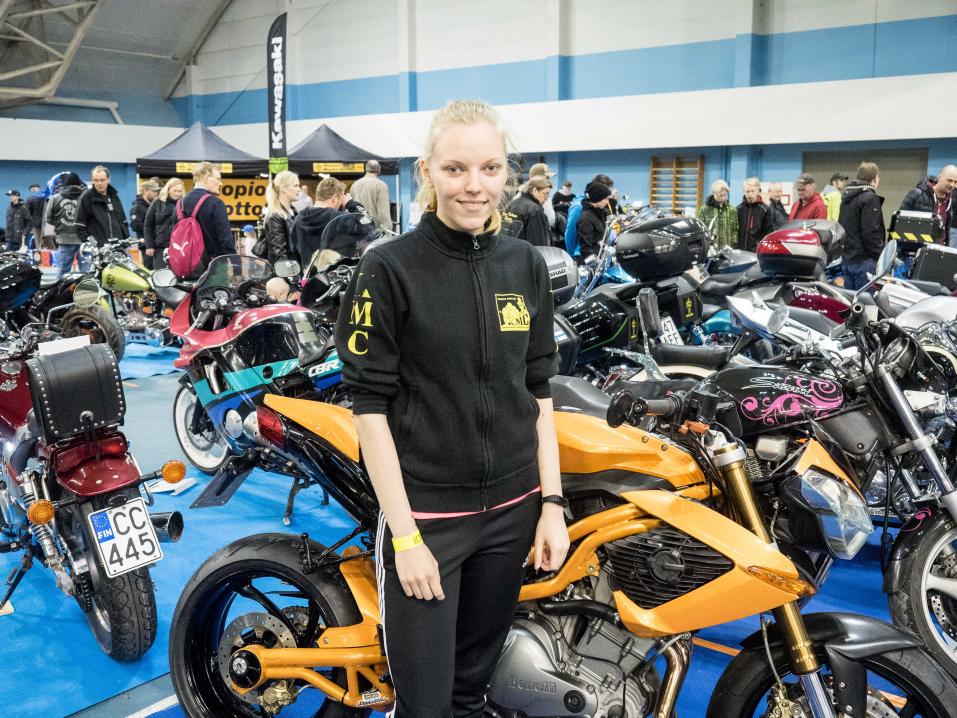 – Kyllä se varmasti isän puolelta tulee. Isä ajoi moottoripyörällä ja olen liikkunut seitsenvuotiaasta asti tämän Kuopion Moottoripyöräclubin mukana, siitä innostus, 18-vuotias Tiia Moilanen kertoo.