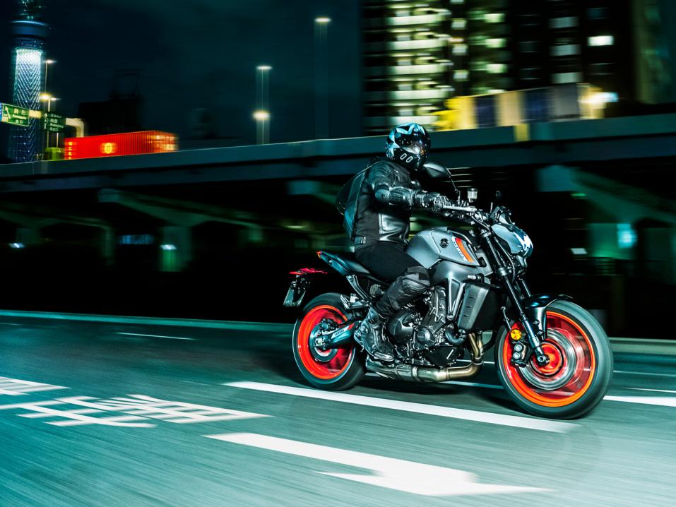 2021 MT-09 on varustettu YZF-R1-tyyppisellä etujarrujärjestelmällä, jossa radiaalisen pääsylinterin mäntä liikkuu rinnakkain jarruvivun suunnassa.