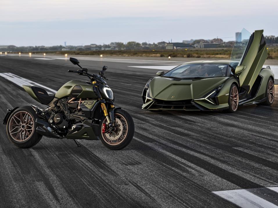 Yhteistyöprojektin toteuttamiseksi Ducatin suunnittelijat valitsivat Siàn FKP 37:n, Lamborghinin malliston kalleimman koskaan rakennetun auton, jota valmistetaan vain 63 kappaletta. Ja nekin kaikki personalisoituina kunkin asiakkaan henkilökohtaisten mieltymysten mukaan. Siàn FKP 37:n innoittajana on ollut Countach-malli, jonka linjat ovat partaveitsenterävät ja siluetti helposti tunnistettava. Hybridimallin moottorien yhteisteho on 819 hv / 602 kW, joten se on myös tehokkain Lambo koskaan.