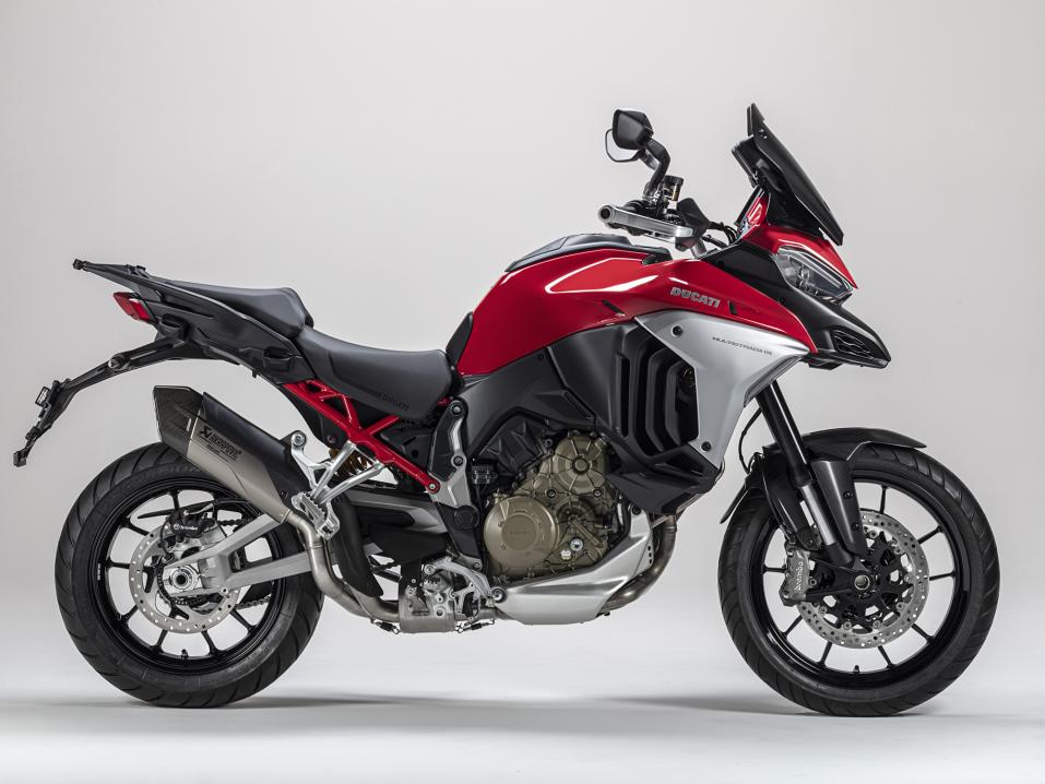 Tarjolle tulee kaksi Akrapovičin lisävarustekittiä. Molemmat on suunniteltu erityisesti tätä mallia varten, ja niiden design on tehty sopimaan Multistradan ulkonäköön.