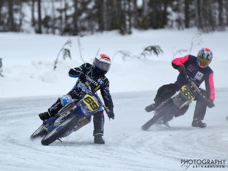 Keli oli Kajaanissa optimaalinen, rata pysyi loppuun asti hyvässä kunnossa ja muutamaa harmillista kaatumista lukuun ottamatta, kilpailut saatiin vietyä läpi, ilman suurempia loukkaantumisia ja lähes aikataulun mukaisesti. On hienoa, että kilpailuja pystyi seuraamaan, edes näin striimauksen välityksellä. Lähetystä riivanneet ongelmat äänen laadun suhteenkin, ratkottiin lähetyksen edetessä. Kilpailun pääselostajat, Jarkko Ylläsjärvi ja Lauri Keränen ansaitsevat ehdottomasti myös omat kiitoksensa. Parhaimmillaan suoraa lähetystä oli seuraamassa yli 1000 jääratamoottoriurheilun ystävää ja lähetys on edelleenkin katsottavissa YouTube:ssa: Jäärata SM - 13.3.2021 Kajaani