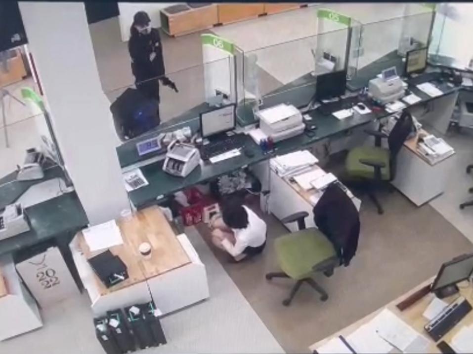 Maskiin pukeutunut voro ryösti aseella sanojaan vahvistaen Vietcombankin konttorin Hai Phong Cityssä tammikuun 7. päivä 2022.