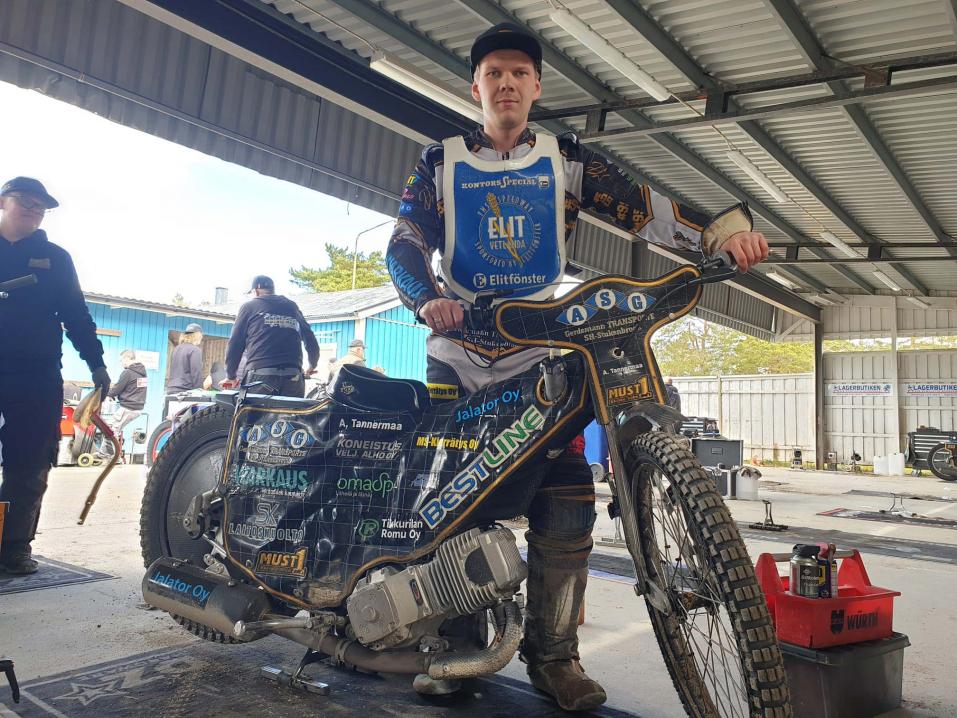 - Tänään mies oli ihan eri maailmasta. Ajaminen sujui heti rennommin ja luontevammin, kun oli viisi erää alla. Startteihin en ole ihan tyytyväinen, vaikka ne varmasti näyttikin siltä, että irtoaa viivalta hyvin. Appe hoiti mekaanikon hommat tuttuun tyyliin 110, välillä jopa 111, kommentoi Jesse B-finaalin suoritustaan.