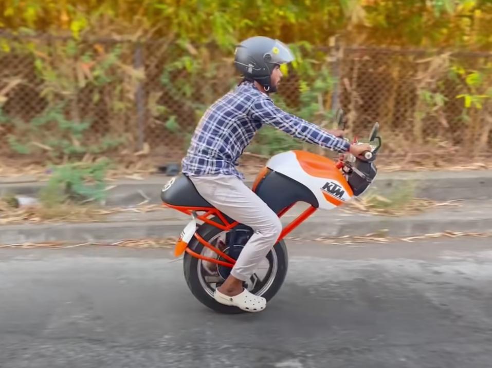 "Creative Science" nimimerkkiä käyttävä tubisti rakentaa alla näkyvällä videolla KTM:ltä näyttävän yksipyöräisen sähkömoottoripyörän. Sen erityispiirre on, että se pysyy itsestään pystyssä ja tasapainossa. Lisäksi sillä onnistuu myös peruuttaminen.