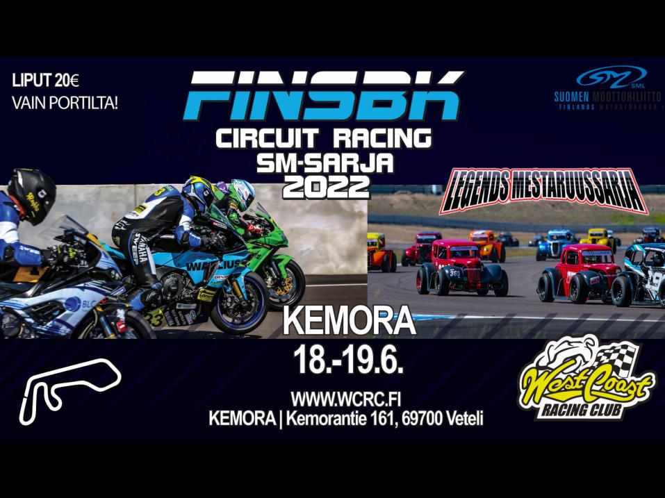"Circuit Racingin ja autojen Legends-sarjan yhdistetty SM-osakilpailu siirretään ajettavaksi Kemoran radalle alkuperäisellä kilpailukalenterin aikataululla 18.-19.6.2022.