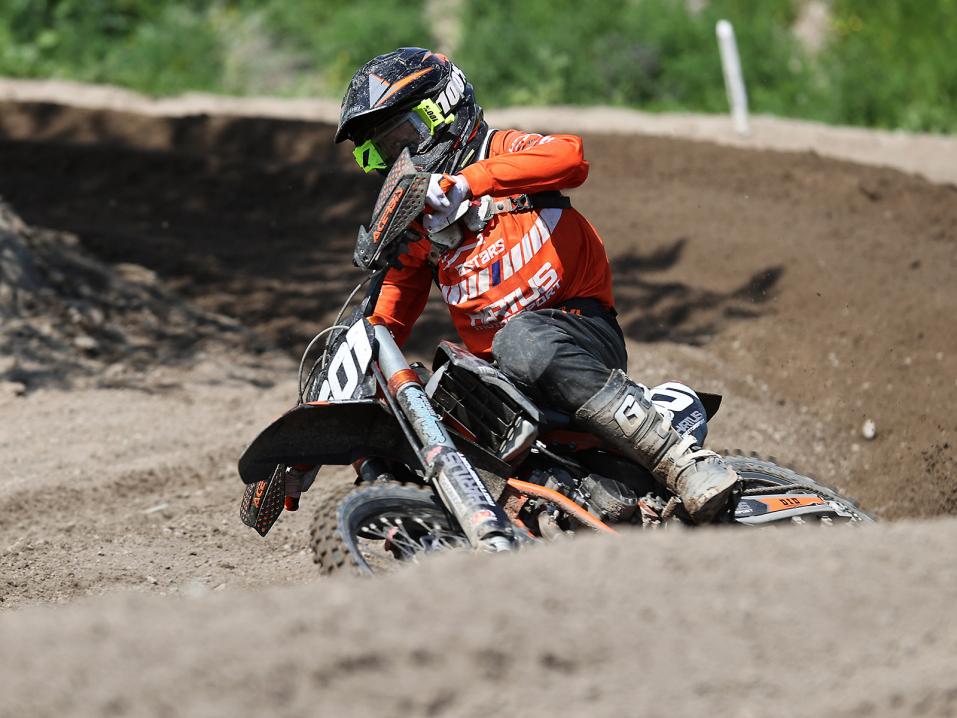 MX65-luokassa mestari oli selvillä jo ennen Kajaanin kisaa, kun Elias Villanen karkasi tavoittamattomaan pistejohtoon edellisessä osakilpailussa. Ensimmäisessä erässä parhaan startin otti Jimi Marttila. Severi Hytönen, Elias Villanen, Joel Orava ja Aatos Pirttinen ajoivat seuraavina. Kärjessä ajanut Marttila ajoi lopulta selkeään erävoittoon ennen toisena ruutulipulle ehtinyttä Hytöstä. Näin Marttilan teoreettinen mahdollisuus hopeaan säilyi edelleen, vaikka Hytönen olikin 21 pistettä edellä. Erän kolmanneksi sijoittui Orava ja Villanen joutui nyt tyytymään nelossijaan.
