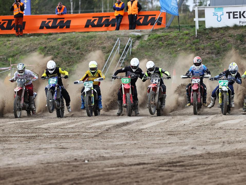 Todella pitkä lauantaipäivä käynnistyy kisaerien osalta jo kello 9:45, jolloin radalle pääsevät MX65-luokan kilpailijat. Joukkueita on mukana 22. Jos paperilla katsotaan, niin E-SMK.n kolmikko on se, jonka ylle heitetään ennakkosuosikin viitta. Podiumille mielivät varmasti myös HMK:n ja KMK:n joukkueet. Aina on kuitenkin myös muistettava, että kyse on moottoriurheilusta, jossa tekniikalla on oma osansa.