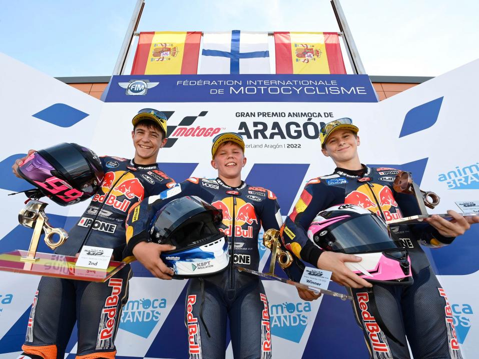 Red Bull MotoGP Rookies Cupissa ajoin ekaa kautta ja yllätyin vähän itsekkin kuinka äkkiä pääsin KTM-pyörän kanssa sinuiksi. Tässäkin sarjassa ylsin 2 kertaa podiumille: Mugellossa P3, ja Aragónissa voitto! Taisi olla muuten Suomen historian ensimmäiset podiumit Red Bull MotoGP Rookies Cupissa.