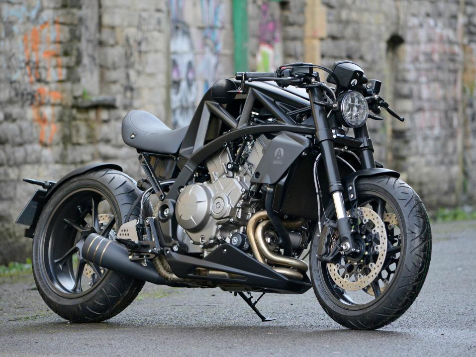 Vaikea sanoa, mitä Crewkernessä Somersetissa yrityksen pääkallonpaikalla on ajateltu, mutta varsin kiinnostava nakupyörä on luvassa. Kuten Arielin Ace -malleissa yleensäkin, moottorina on Honda VFR:n 1237 cm3 V4, jonka teho perusvireessä on 172 hevosvoimaa. Kardaaniveto ja kuusi vaihdetta tulevat mukana.