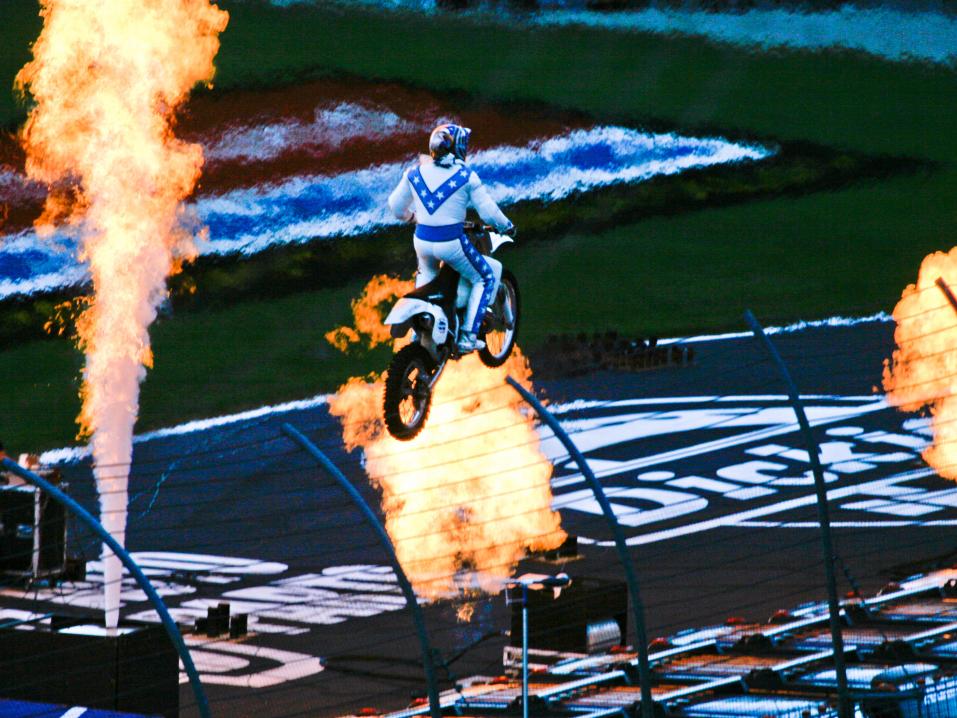 Kelly Knievel myös muistutti, että mies hyppäsi lentotukialuksen kannella olleiden sotilaslentokoneiden yli 2004.