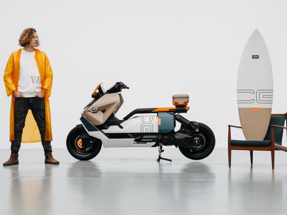 BMW CE 04 Vagabund Moto Conceptissa on esimerkiksi käytännöllinen takalaukku lisääämässä tavaratilaa sekä surffilaudalle tarkoitetut kiinnikkeet, jolloin voi ajaa joko lähimmälle järvelle tai merenrantaan surffailemaan. Surffilauta ei ole vain urheiluväline, vaan myös ympäristöä säästävän ja urbaanin elämän metafora.