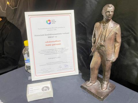 – Antti-patsas on Suomen Uutismedian liiton vuosittain myöntämä patsas, joka myöntää patsaan henkilölle tai yhteisölle, joka on näkyvästi edistänyt paikallislehden ja paikalliskulttuurin asiaa. Aikaisempia Antti-patsaan saajia ovat olleet muun muassa THL vuonna 2021 ja Presidentti Sauli Niinistö vuonna 2020. Tämä on vuoden 2022 Antti-patsas, mutta koska MP23-messut olivat helmikuussa, niin se luovutettiin meille siellä messuilla, selitti Saarinen.