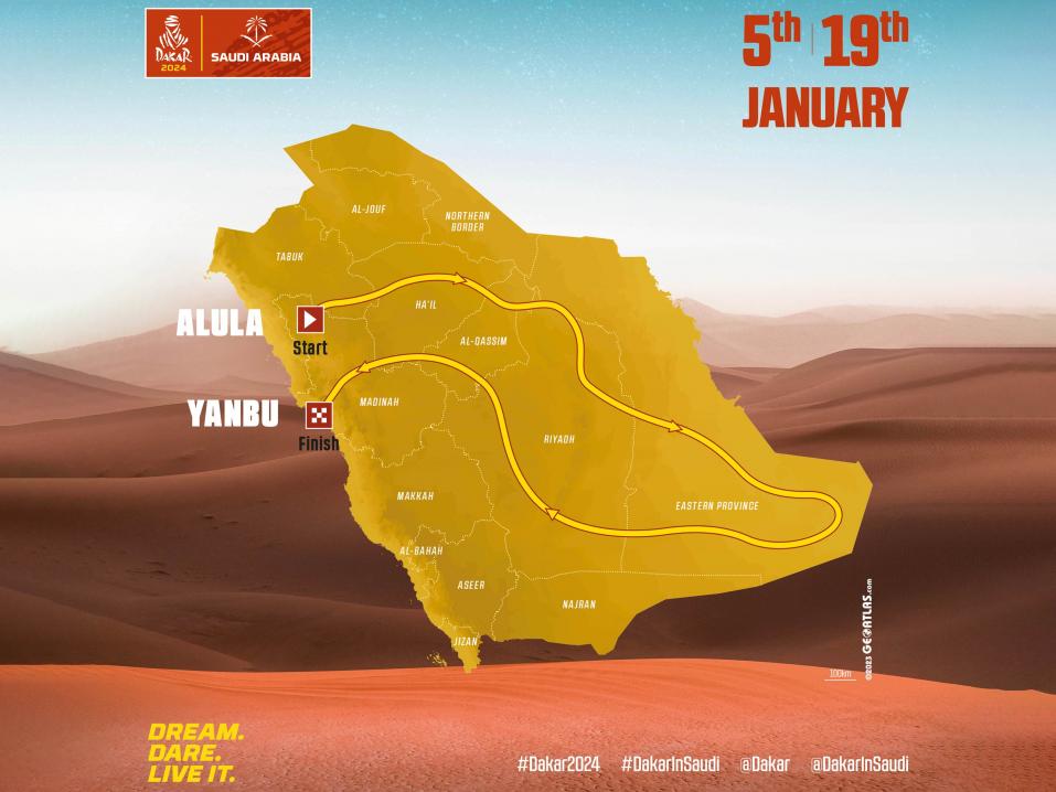 Legendaarinen Dakar-ralli ajetaan jo viidennen kerran Saudi-Arabiassa. Itse kisa järjestetään 5. - 19. tammikuuta 2024. Lähtöpaikkana toimii AlUlan tuhatvuotinen kaupunki, sieltä reitti menee Tyhjän Neljänneksen suunnattomalle autiomaa-alueelle ja maaliin tullaan Yanbussa, Punaisen Meren rannalla.