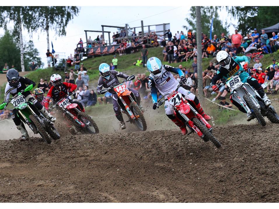 MX125-luokan avauserä käynnistyi Simo Koskisen johdolla. Arttu Sahlsten oli toisena, mutta joutui jo toisella kierroksella päästämään Eelis Viemerön ohitseen. Erän loppupuolella Onni Jaakonsaari ohitti Sahlstenin ja nousi kolmanneksi. Maaliintulojärjestys ratkesi vasta viimeisellä kierroksella kun Viemerö ohitti Koskisen ja nousi erän voittoon. Koskinen oli toinen ja Jaakonsaari kolmas.