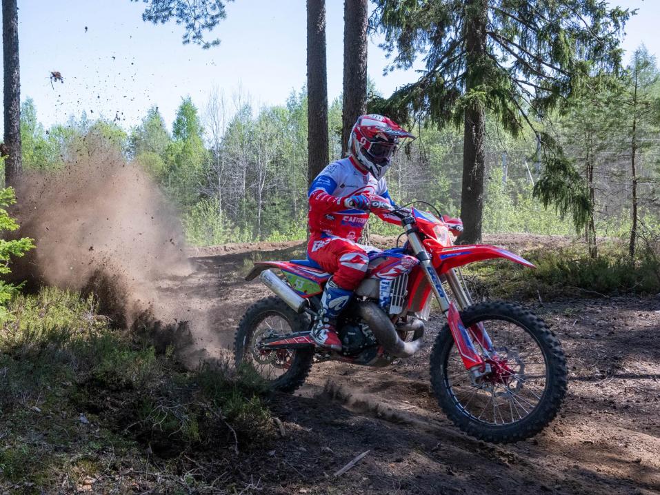 – Oli mukava ajaa kilpaa ajotauon jälkeen. Reitti meni sekä enduro- että crossierikoiskokeen osalta todella kuluneeseen kuntoon. Itse koin varsinkin crossierikoiskokeen osalta, että vauhtia olisi voinut olla enemmänkin, mutta siinäpä sunnuntaille parannettavaa. Ja lämmintä riitti, Puhakainen viestitti kilpailun varikolta.