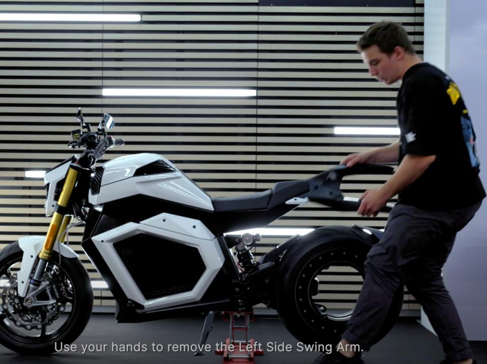 Ratkaisun tekee – asia, jota emme ole tulleet ajatelleeksi – mielenkiintoiseksi kysymys siitä, miten takarengas vaihdetaan. Sillä epäilemättä rengasrikko on sähköprätkille aivan yhtä mahdollinen tapahtuma kuin bensakäyttöisillekin pyörille, ja joka tapauksessa kilometrit kuluttavat aikanaan joka renkaan loppuun.