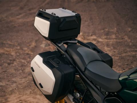 Pitkällä matkalla tarvitaan paljon käytännöllistä tavaratilaa, ja Vario-laukuissa mielenkiintoista on se, että kunkin laukun tilavuus on säädettävissä. Koska kyse on kovista laukuista, tilan säädön määrä on rajallinen, mutta ajatus on itsessään mielenkiintoinen.